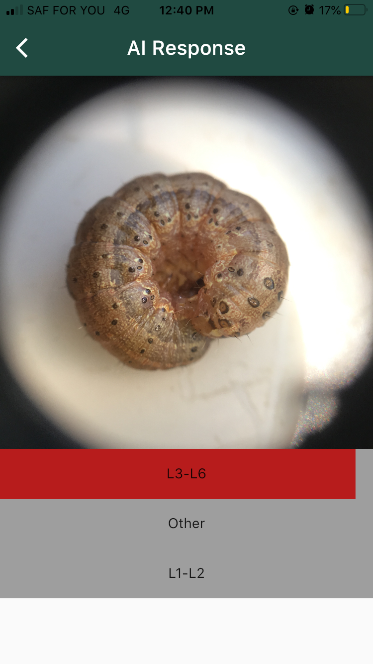 Fall armyworm (FAW) is an invasive pest originating from South American now spreading worldwide, affecting the livelihood of over 600 million farmers (source: http://www.fao.org/fall-armyworm/en/). Farmers in Africa and Asia who have never encountered this pest struggle to identify this pest particularly in its larval stage – to take preventative action that will stem the devastation that will soon follow.