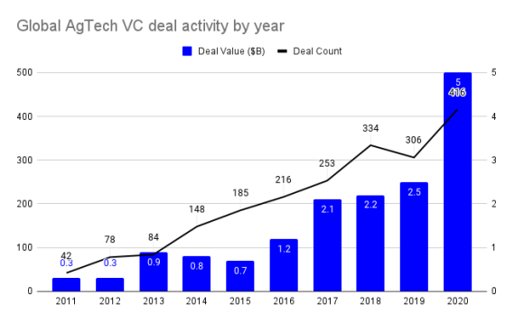 Global AGTech & FoodTech VC deal activity (Source: PitchBook) continues to climb each year, and can be seen by the infographics shown below: