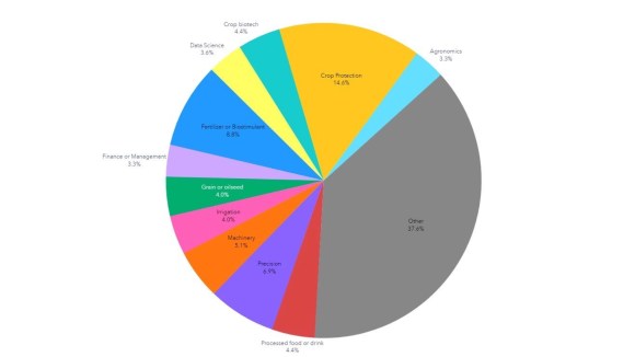 Secondary partnership areas include crop biotech, grain or oilseeds, data science, finance or management, and agronomics. Highly diverse and individually less frequent ‘other’ subjects (Fig 5) round out the roster: breeding, crop insurance, drones, carbon, meat substitutes, renewables/emissions, crop warranty, feed, flavorings/additives, bioprocess, livestock, logistics/traceability, food access/utilization, packaging, seed, weather, fiber, indoor farming and a lone partnership supporting fresh produce.