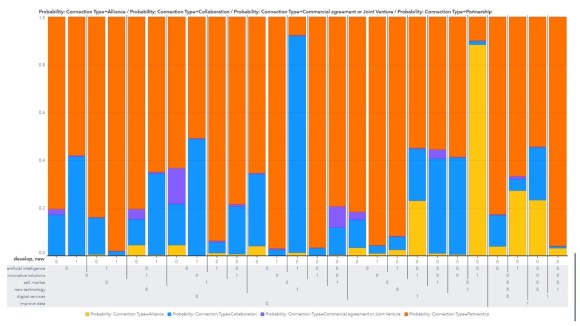 - The topics that overall make the label ‘alliance’ less likely are: “sell” and “market,” “develop” and “new,” and “improve” and “data.”