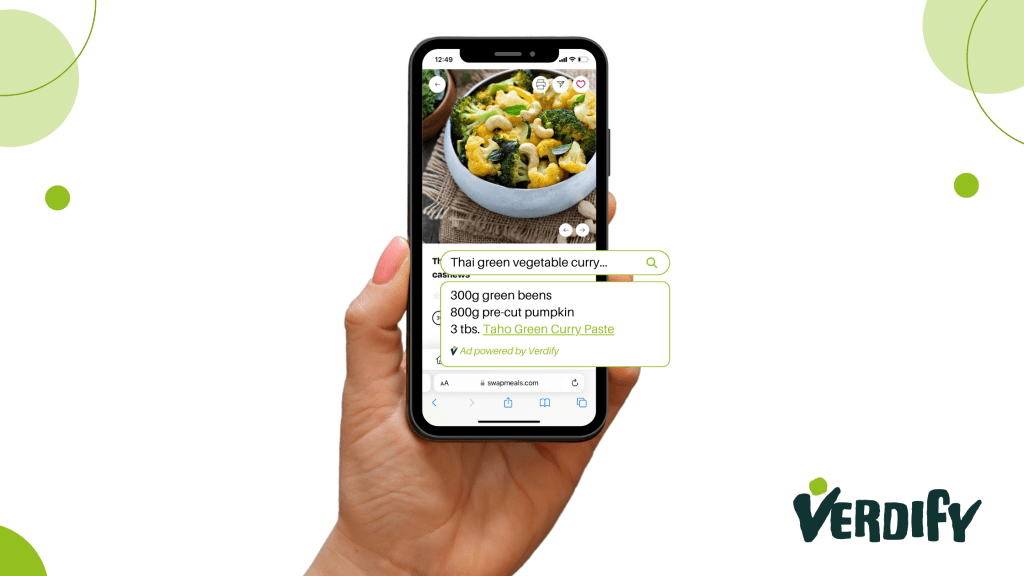 Verdify’s retail technology is already operational on 40 recipe websites, encouraging people to make food choices with a neutral, or preferably positive impact. Inspired by the fact that eating less meat can save almost 50% of greenhouse gas emissions3, Verdify promotes gradual shifts towards a more sustainable and healthier eating pattern with simple product swaps. The company, therefore, promotes plant-based alternatives and will soon introduce ‘swap’ buttons on recipe websites. With one click, recipes can be converted to a vegetarian version or an alternative with lower carbon emissions. The company is in ongoing discussions with supermarkets and food companies to implement swap technology on their websites, significantly expanding its reach.